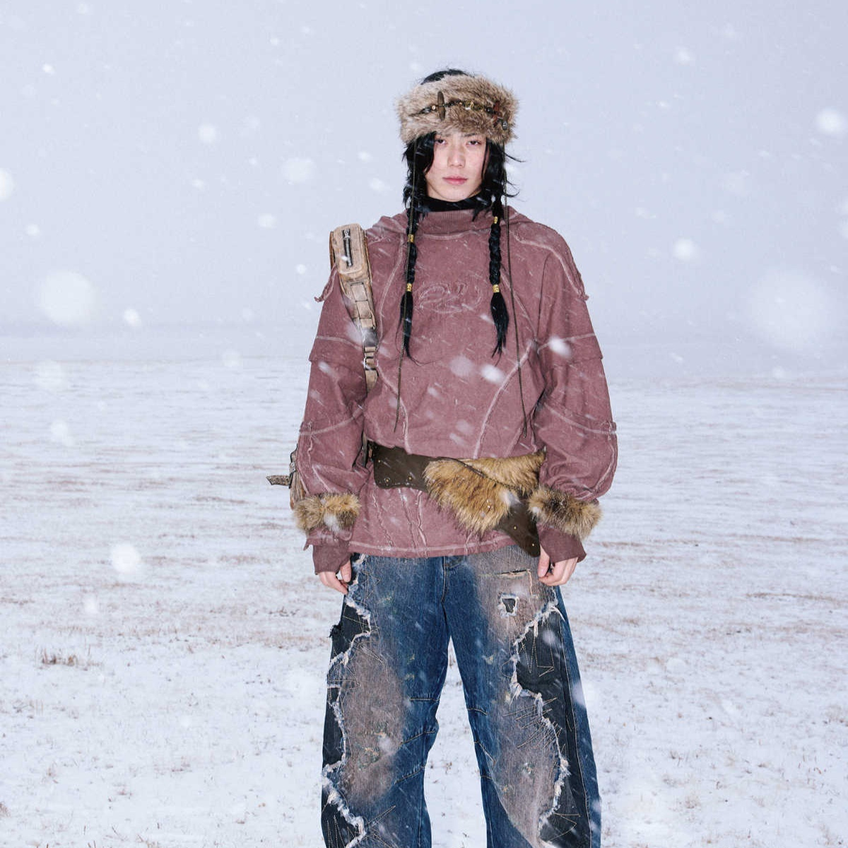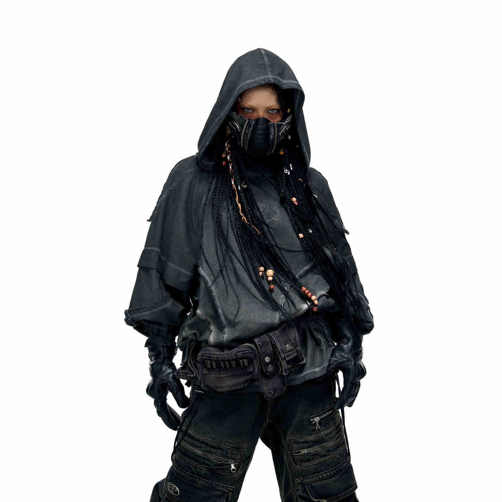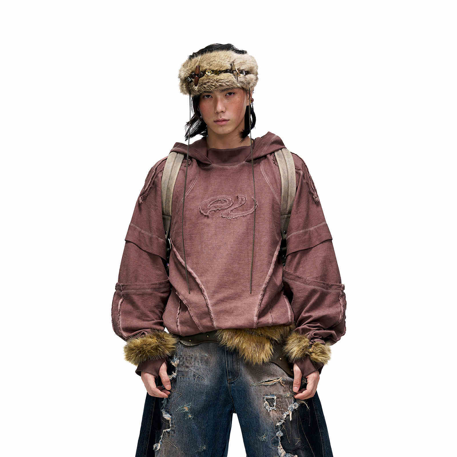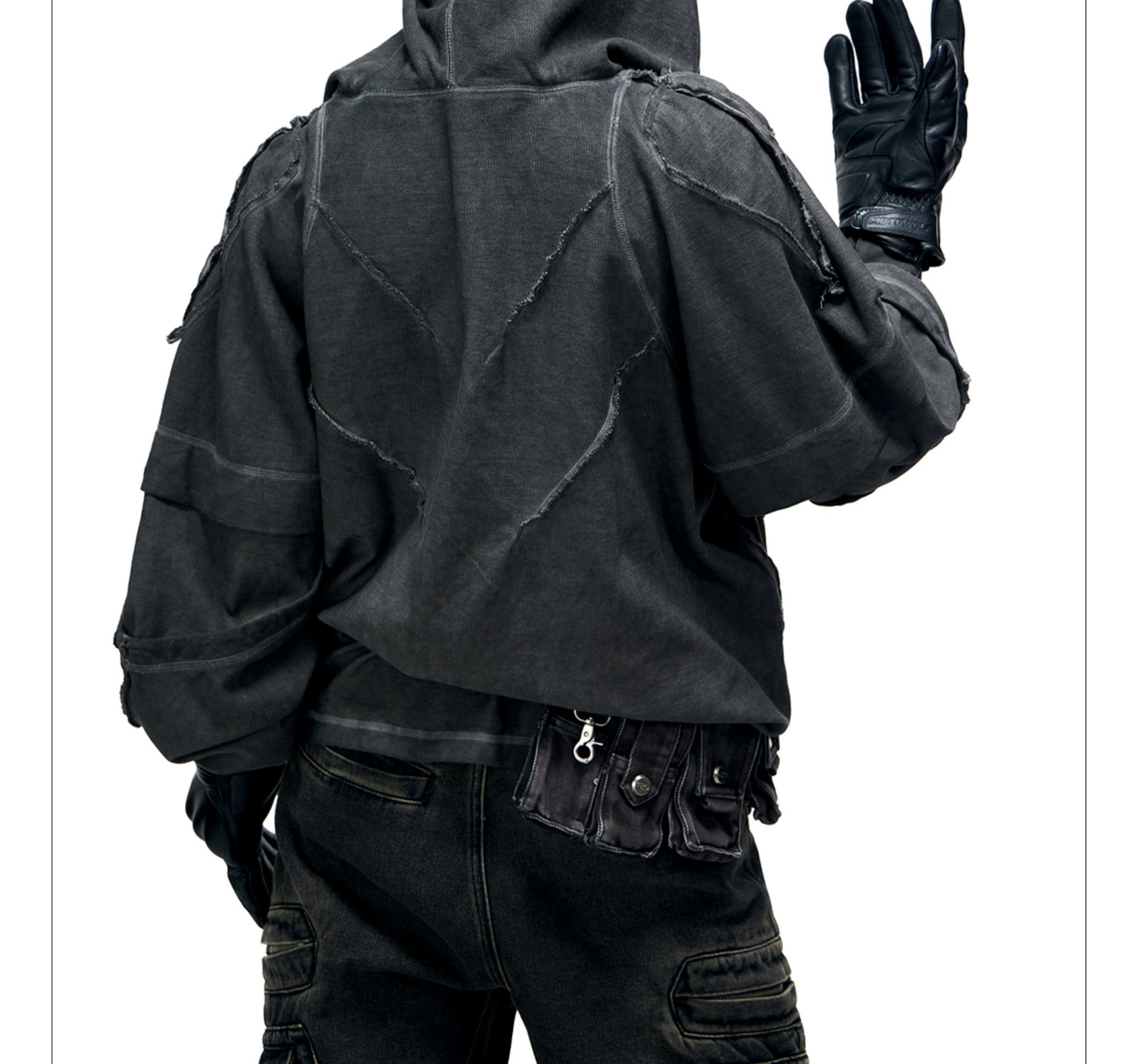 Split Structure Fried Dyeing Distressed Hooded Sweater For Men